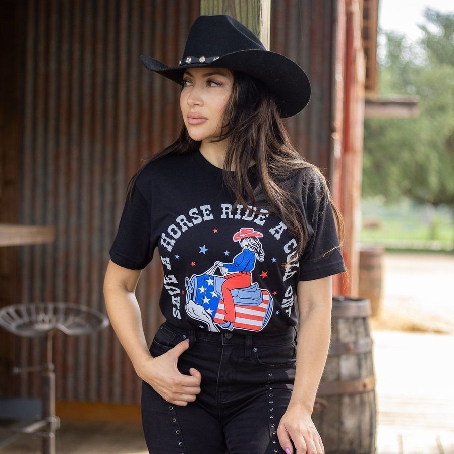 Heighten your Grunt Style wardrobe with the Women’s Save a Horse Boyfriend Fit T-Shirt. This shirt is designed for line-dancing legends and honky-tonk queens who want to showcase their love for country life with some Grunt Style flair. Crafted from soft, breathable fabric, it offers unparalleled comfort for long nights on the dance floor or casual outings with friends. Whether you're hitting the dance floor or enjoying a laid-back Sunday, this t-shirt is perfect for expressing your unique style and pairs effortlessly with your favorite jeans, jorts, or skirt. Choose the Women’s Save a Horse Boyfriend Fit T-Shirt to make a statement that combines technique and fun. Shop now to add this must-have item to your collection and show off your love for the Rodeo and horses!
