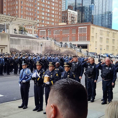 The End of Watch Program is a collaboration between Grunt Style and Folds of Honor to honor fallen first responders. Each month, we create a custom-designed shirt to pay tribute to these heroes, with 70% of the profits going directly to the family and 30% being donated to the Folds of Honor’s scholarship program. This initiative aims to provide both financial support and educational opportunities for the families left behind.