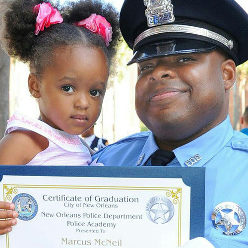 Marcus McNeil was a dedicated New Orleans police officer, devoted father, and passionate community servant. Though his time in uniform was tragically short, his impact lives on through his daughter, Maisie. A bright and determined sixth grader, Maisie thrives in school, excelling in English, creative writing, and the arts. She’s an active member of her school’s dance and swim teams and dreams of a future as a teacher or a neurosurgeon. By purchasing this End of Watch shirt, you honor Marcus’s sacrifice and support families like the McNeils, helping Maisie continue her education and chase her many dreams.